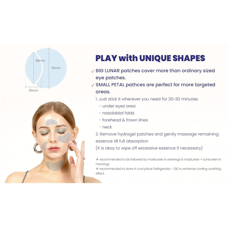 Basen af 70 mm plastrene dækker et stort hudområde under øjnene, hvilket giver mulighed for at arbejde med aldersrelaterede ændringer i kind- og kindbensområdet og er også velegnet til brug på halsen til at bekæmpe Venus-ringe. Et ekstra plaster, der måler 25mm*55mm, kan bruges lokalt i området ved nasolabialfolderne, mellem øjenbrynene og på panden.