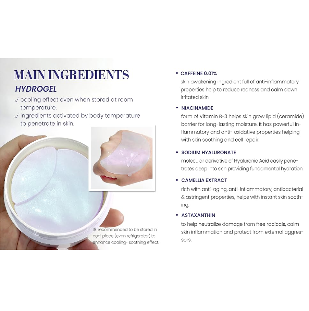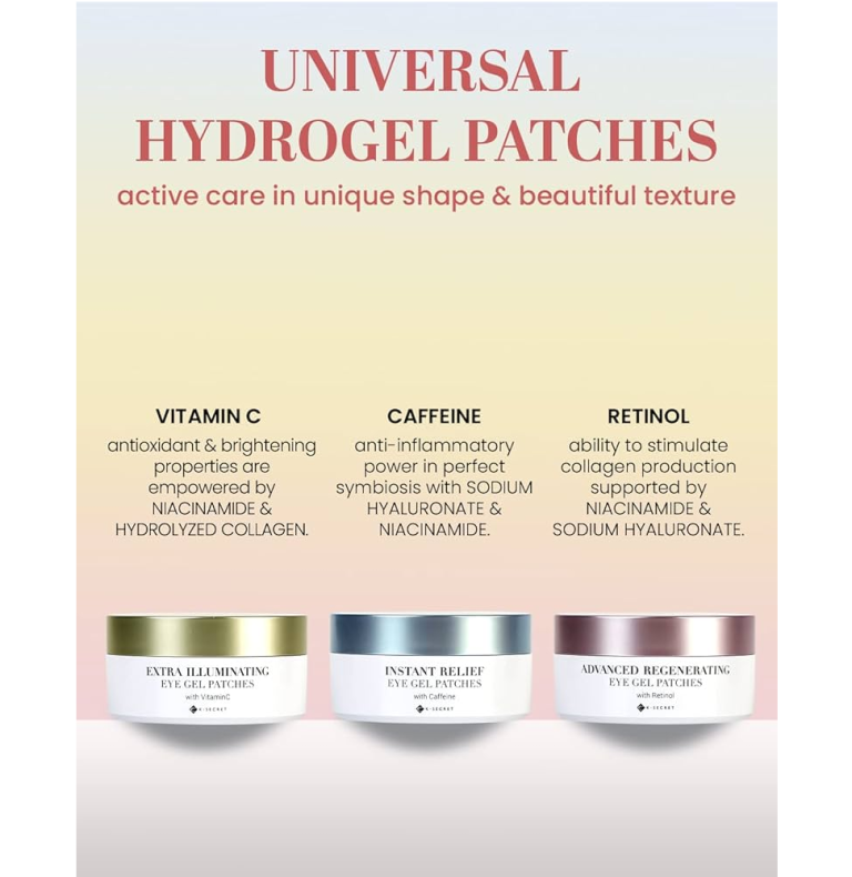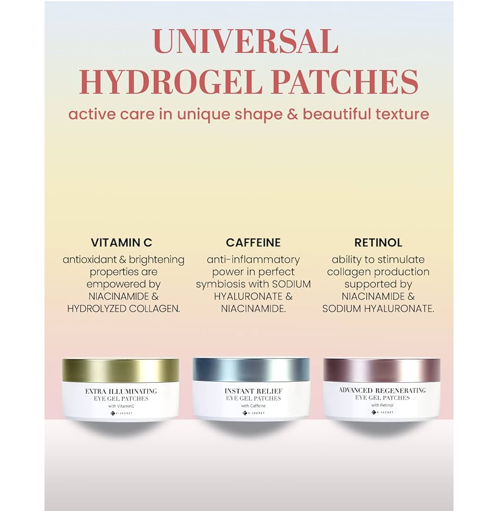 Hydrogelplastre til hævelser med koffein K-SECRET Instant Relief Eye Gel Patches opfrisker udseendet og reducerer hævelser under øjnene.