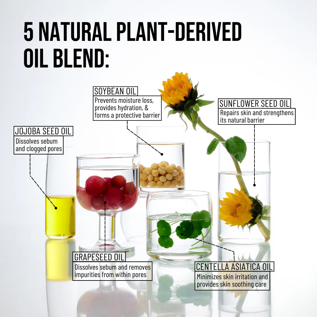 Ethylhexyl Palmitate, Sorbeth-30 Tetraoleate, Helianthus Annuus (Sunflower) Seed Oil, Caprylic/Capric Triglyceride, Tocopherol, Vitis Vinifera (Grape) Seed Oil, Squalane, Simmondsia Chinensis (Jojoba) Seed Oil, Macadamia Ternifolia Seed Oil, Adansonia Digitata Seed Oil, Citrus Aurantium Bergamia (Bergamot) Fruit Oil, Centella Asiatica Oil, Citrus Limon (Lemon) Peel Oil, Glycine Soja (Soybean) Oil.